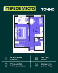 Продается квартира-студия в Жилом комплексе ''Родные просторы''!В квартире выполнена качественная предчистовая отделка: Выровненные и подготовленные для отделки финишными материалами стены — улучшенная штукатурка стен. Подготовленный к укладке покрытия пол — стяжка пола. Коммуникации, выведенные в специальных местах в санузлах и кухонной зоне. Металлические входные двери с внутренней фрезеровкой и 2 замками. Металлопластиковые окна с долговечной фурнитурой. Радиаторы со встроенными терморегуляторами. Гидроизоляция пола санузлов.Крутая комплексная застройка территории с развитой инфраструктурой - на территории комплекса расположены школа на 1550 мест, 3 детских сада на 800 мест, поликлиника и частные клиники. На первых этажах домов расположены коммерческие помещения. Дворы свободны от автомобилей. Для автовладельцев предусмотрено более 2000 мест на открытых парковках по периметру микрорайона, и многоуровневые крытые наземные паркинги. Большая часть микрорайона оборудована пешеходными зонами и благоустроенными придомовыми территориями со спортивными площадками и большими детскими игровыми пространствами. Вся инфраструктура района находится в пешей доступности и располагаться внутри микрорайона.Рядом трасса М-4 - удобный выезд в сторону моря!Звоните прямо сейчас и покупайте квартиру в классном жилом комплексе!