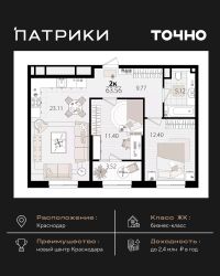 Флагманский проект группы компаний Точно - жилой комплекс бизнес-класса Патрики, это 10 домов разной этажности расположившихся на 28,5 гектарах. Жилой комплекс с концепцией город в город - прогулочные аллеи, парковая территория, 3 детских сада, 2 школы - одна из которых частная, Гранд аллея с ресторанами, фонтанами и модными бутиками, уникальные мафы и ландшафтный дизайн, создают особую атмосферу - место в котором хочется находиться. В Патриках предусмотрен и креативный кластер Цех, который включает в себя пространство для коворкинга, фудкорт, бутики, детский комплекс, лектории, фитнес-клуб Баланс с волной для сёрфа. Но и это еще не все ГК Точно уважает историю, поэтому мы сохранили 2 башни - наследство от завода ''Сельмаш'' исторический арт-объект назвали Мастер и Маргарита.