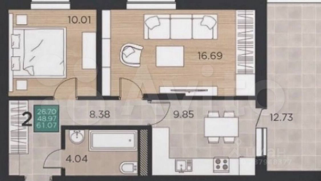 38 м² · Этаж 2 из 6
