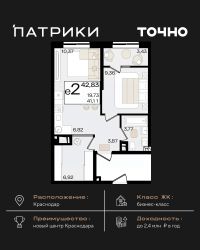 Флагманский проект группы компаний Точно - жилой комплекс бизнес-класса Патрики, это 10 домов разной этажности расположившихся на 28,5 гектарах. Жилой комплекс с концепцией город в город - прогулочные аллеи, парковая территория, 3 детских сада, 2 школы - одна из которых частная, Гранд аллея с ресторанами, фонтанами и модными бутиками, уникальные мафы и ландшафтный дизайн, создают особую атмосферу - место в котором хочется находиться. В Патриках предусмотрен и креативный кластер Цех, который включает в себя пространство для коворкинга, фудкорт, бутики, детский комплекс, лектории, фитнес-клуб Баланс с волной для сёрфа. Но и это еще не все ГК Точно уважает историю, поэтому мы сохранили 2 башни - наследство от завода ''Сельмаш'' исторический арт-объект назвали Мастер и Маргарита.
