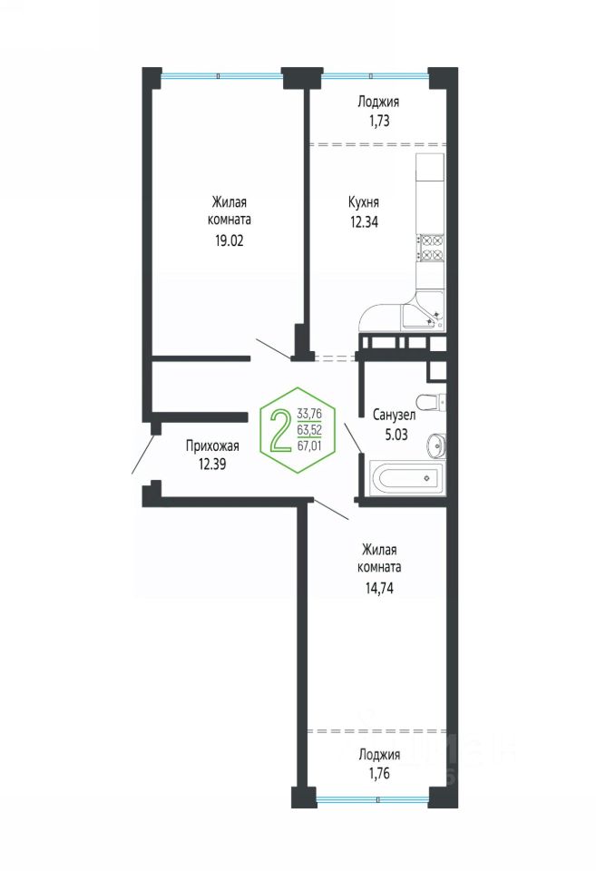 67 м² · Этаж 16 из 16