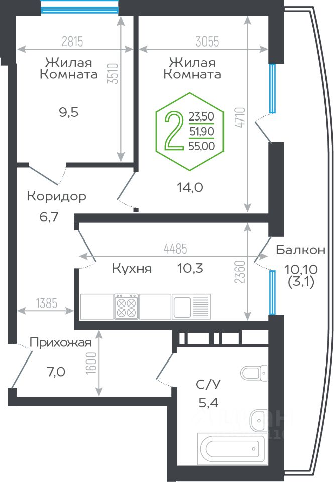 53 м² · Этаж 9 из 21