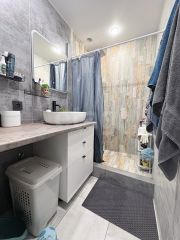 Добрый день. Продаю просторную однокомнатную квартиру с видом на восход .В квартире выполнен качественный ремонт,дорогими материалами. Высота потолков 3,3 метра.В прихожей,ванной комнате,кухне и лоджии установлены электрические теплые полы.Квартиру продаем без бытовой техники,остаются только Сплит системы в комнате и на кухне.Во всей квартире натяжные потолки.Весь ремонт делали для себя,для комфортного проживания.В пешей доступности находится садик и школа,детские площадки,спорт площадки,поликлиника.Продаю в связи с необходимостью покупки жилья большей площади.На все вопросы готов ответить,цена обсуждаема,возможен торг.