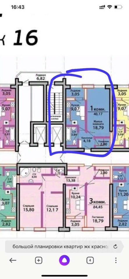 Код: 123 Продам 1 комнатную квартиру в ЖК Большой Тип дома - кирпич 9 этаж из 25 этажей Обременений нет Лоджия + балкон Вид на улицу Коммунаров