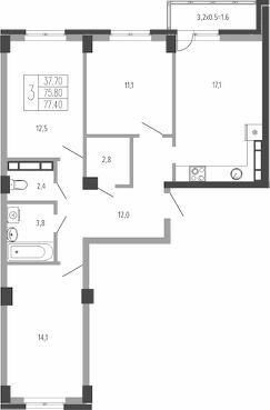 2-к, Круговая, 4/1 корп. 3 Показать на карте