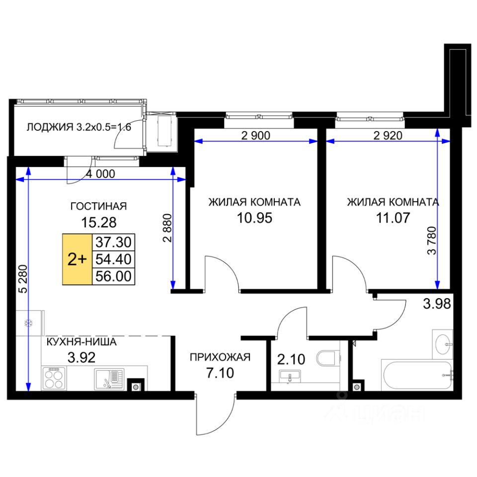56 м² · Этаж 6 из 16