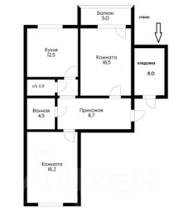 2-к, им Карякина, 15 Показать на карте