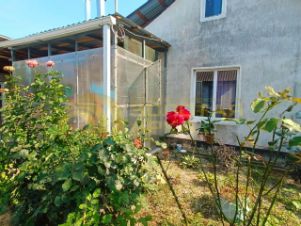Продается дом 89,3 м2 на Первом проезде СНТ ''Хуторок'' 2017 года постройки. Часть дома (зал, кухня, ванная комната) материал стен- брус. Часть дома (гардеробная, 2 спальни) - газоблок. Пристройка из газоблока узаконена. Кухня 18кв.м., зал 17 кв.м., ванная и туалет совмещены - 6 кв.м., детская комната - 18 кв.м., спальня - 16 кв.м., гардеробная - 2 кв.м. Все комнаты раздельные. Пол по всему дому - плитка. Межкомнатные двери и окна - металлопластик с ламинацией (цвет венге). Канализация - септик, водоснабжение - центральное, электричество - 15кВТ. Отопление - электрические конвекторы в каждой комнате с электронным блоком управления, варочная поверхность электрическая инверторная, новый холодильник, кондиционер, бойлер. Дом очень теплый и сухой за счет того, что построен так, что там, где солнечная сторона расположены окна в пол. При продаже остается вся бытовая техника, кухонный гарнитур (деревянные итальянские фасады), спальные гарнитур, детская (две кровати, комод, шифоньер).Участок 8,71 сот. огорожен деревянным забором ИЖС, сделано межевание. на участке растут плодовые деревья и кустарники: инжир, хурма ''россиянка'', ягода годжи, груша, яблони, гранат, унаби, малина, черная смородина, красная смородина, крыжовник, фундук. Имеется скважина для полива, мангальная зона, сарай.