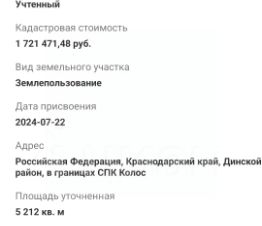 Объект 4248. Продажа!!!Земельного участка .Технические характеристикипомещения:-Правильная форма,-Удобные подъездныепути,-Хорошая локация,-Электричество пофасаду,-Примыкает к зонам Ж1,ОД1,ОД3,t1Инфраструктура и преимущества- Фасад участка выходитна дорогу,- Находиться в чертегорода,Возможное использование: -Сель хоз назначения,Индивидуальный подходк каждому потенциальному покупателю.Организуем просмотр в удобноедля Вас время, значительная часть нашихобъектов не публикуется в рекламе. Мыпоможем выбрать идеальное помещениедля Вашего бизнеса.МЫ ЭКСПЕРТЫ В СЕГМЕНТЕ КОММЕРЧЕСКОЙНЕДВИЖИМОСТИ КРАСНОДАРСКОГО КРАЯ.Работая с нами, вы получите:-Высокоекачество сопровождения сделки от началаи до конца,-Широкий спектрсопутствующих услуг,-Оптимизацию вашихрасходов при заключении сделки,-Экономию Ваших нервови времени при переговорах,-Доступ к уникальнойбазе объектов, многие из которыхотсутствуют в открытой рекламе,-Помогаем оформлять все видыипотеки(коммерческая, промышленная,субсидированная)! Заходите в наш профиль, чтобыознакомиться с нашими актуальнымипредложениями! Добавьте объявление в Избранное,чтобы не потерять! Подписывайтесь нанаш магазин, чтобы не упустить актуальногопредложения!