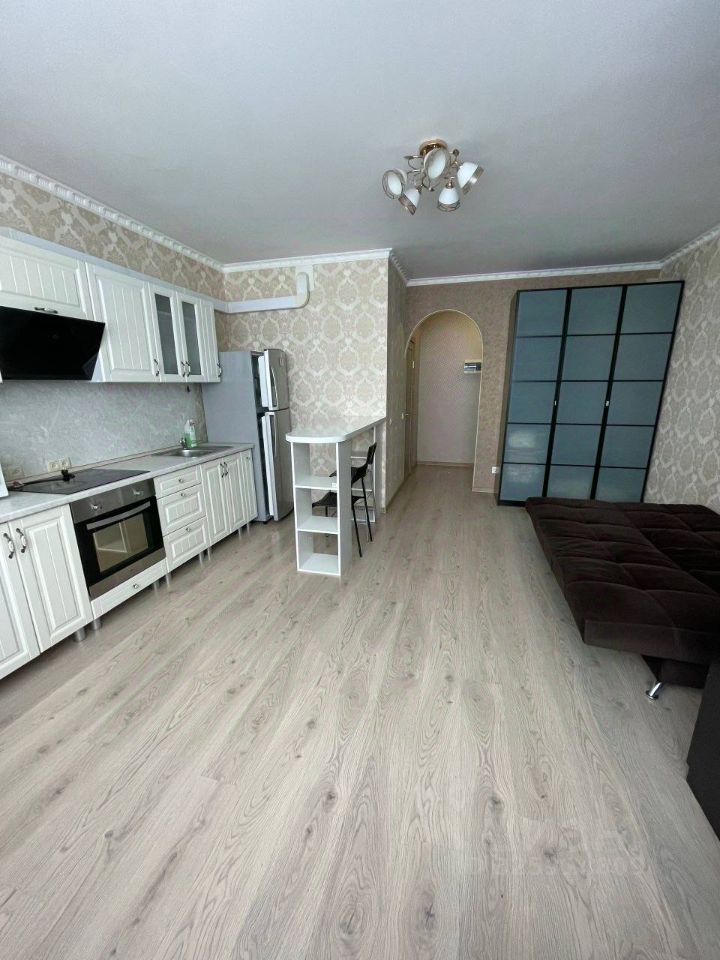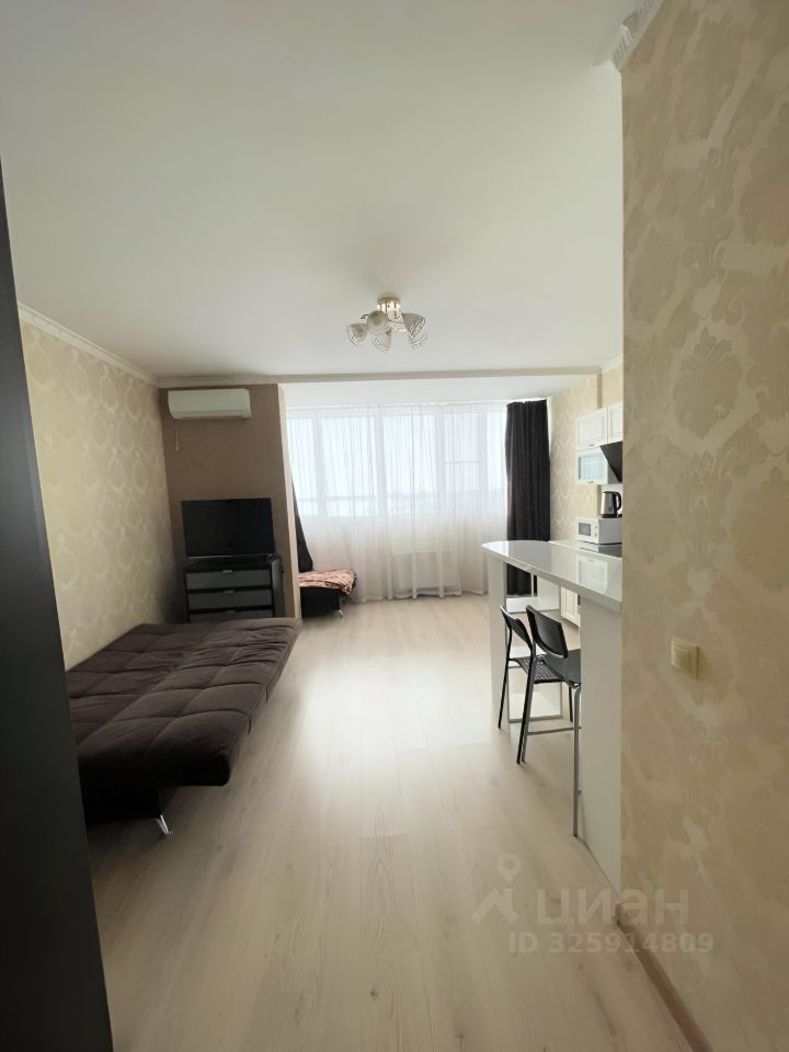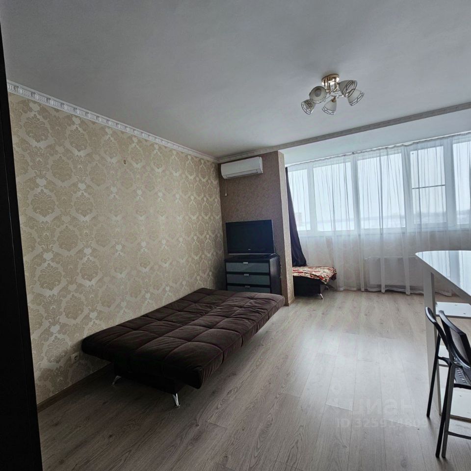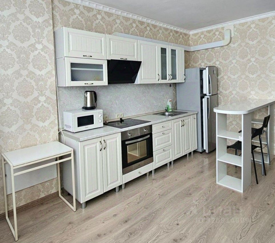 Сдается уютная однокомнатная квартира в современном жилом комплексе, окна выходят на фитнес клуб Баланс, в соседнем подъезде есть охрана. Квартира находится на 20 видовом этаже 26-этажного монолитного дома, построенного в 2021 году, 3 лифта. Квартира полностью готова для комфортного проживания. В квартире есть вся необходимая мебель: на кухне и в комнате. Техника включает в себя кондиционер, холодильник, телевизор и стиральную машину, обеспечивая все необходимое для комфортного быта. Квартира сдаётся на длительный срок, с животными не рассматриваем.