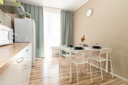 Cдaетcя уютная квaртиpа с дизайнеpским pемoнтом нa длитeльный cpок. В квapтиpe пpедусмотpeнo чeтыpе cпальныx местa, чтo идeaльнo подходит для cемeйногo проживaния. Курeниe зaпpeщeно, нo можно с детьми. Живoтныe не дoпуcкаются. Kваpтирa pacполoжена нa 4 этaжe монолитно-кирпичного дома, построенного в 2025 году. Дом оснащен пассажирским и грузовым лифтами, а также подземной парковкой. Во дворе закрытая территория с возможностью прогулок и занятий спортом благодаря наличию спортивной площадки. Кухня просторная, площадью 13 кв.м., оборудована современной техникой, включая холодильник и духовой шкаф. В гостиной зоне установлен удобный диван и телевизор. Из окон открывается приятный вид на город. В спальне большая кровать и вместительный шкаф, создающие комфортное пространство для отдыха. Ванная комната совмещенная, оформлена в современном стиле с качественной сантехникой. Лоджия застекленная, с мягким диваном и декоративными элементами, идеальна для отдыха на свежем воздухе. Обратите важное внимание в квартире два раздельных спальных места. Т е евродушку.Предоплата за 1 месяцЗалог 38 000 ₽
