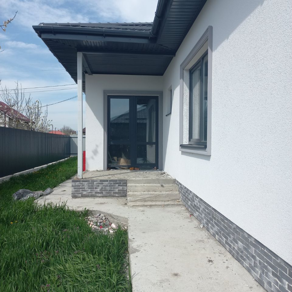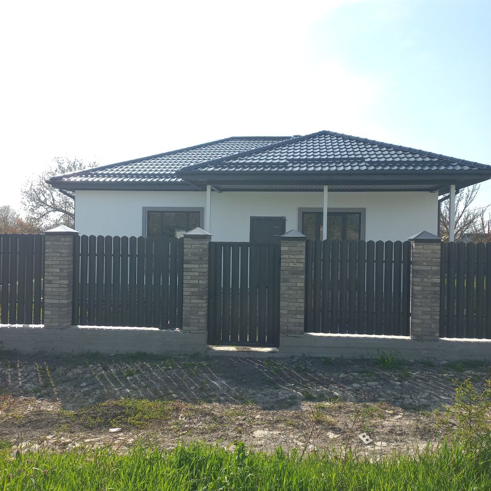 Продаётся одноэтажный дом 115,8 кв.м.(кадастровый 23:37:0602002:5719) в казачьей станице Гостагаевская с видом на гору Хантучка. Планировка дома: 3 спальни, кухня-гостиная, совмещенный санузел, прихожая с холлом, 2 террасы. Стены из керамзитоблока, кровля - металлочерепица, утепление из экологичного материала - каменная вата. Наружная отделка - камешковая штукатурка, цоколь облицован декоративным камнем. Внутренняя отделка - электроразводка по всему дому, оштукатурены стены , тёплые полы, в спальнях установлены радиаторы отопления, механизированная стяжка пола. Коммуникации: электричество 15 кВт, скважина, сетевой газ рядом с участком. Установлен забор (из евроштакета и профнастила с кирпичными колоннами), откатные ворота, калитка.