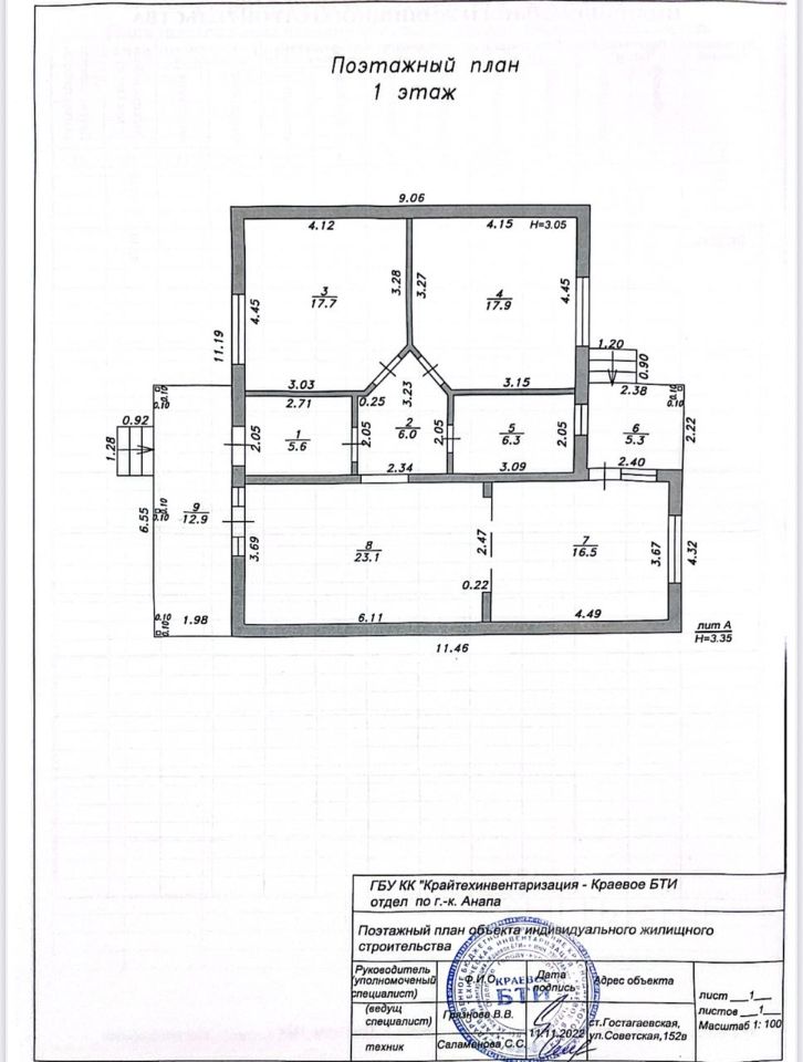 Продаётся одноэтажный дом 115,8 кв.м.(кадастровый 23:37:0602002:5719) в казачьей станице Гостагаевская с видом на гору Хантучка. Планировка дома: 3 спальни, кухня-гостиная, совмещенный санузел, прихожая с холлом, 2 террасы. Стены из керамзитоблока, кровля - металлочерепица, утепление из экологичного материала - каменная вата. Наружная отделка - камешковая штукатурка, цоколь облицован декоративным камнем. Внутренняя отделка - электроразводка по всему дому, оштукатурены стены , тёплые полы, в спальнях установлены радиаторы отопления, механизированная стяжка пола. Коммуникации: электричество 15 кВт, скважина, сетевой газ рядом с участком. Установлен забор (из евроштакета и профнастила с кирпичными колоннами), откатные ворота, калитка. Земельный участок площадью 5 соток включён в стоимость дома. К дому асфальтированная дорога и твердо-щебеночный подъезд. До города-курорта Анапа и побережья Черного моря около 20 км. Полная стоимость в договоре купли-продажи. Возможна ипотека