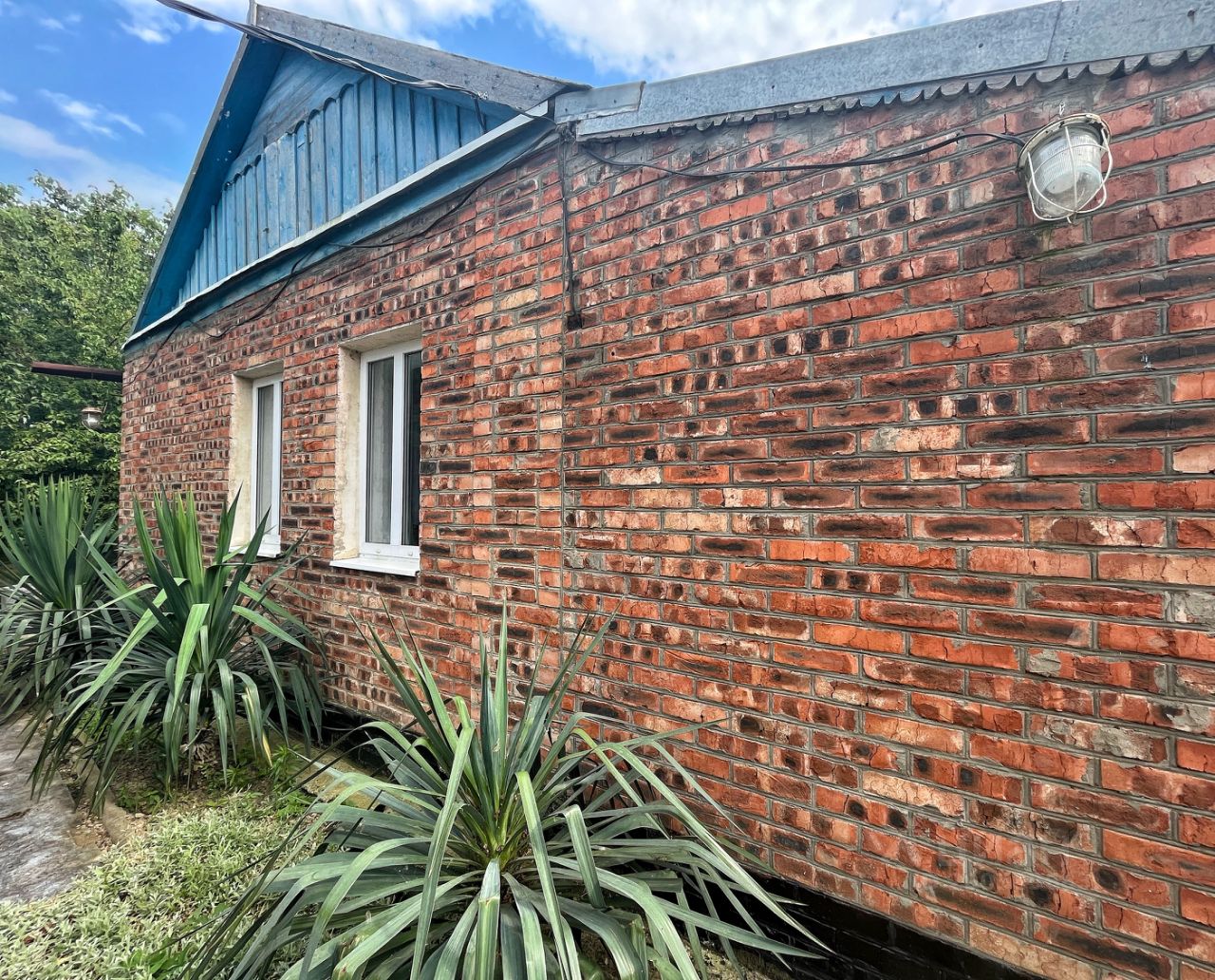 Материал стен - саман, облицован кирпичом. Кровля - шиферная. Металлопластиковые окна. В доме - две изолированные комнаты, одна проходная, есть санузел и прихожая. Мебель в наличии (останется покупателю по необходимости).