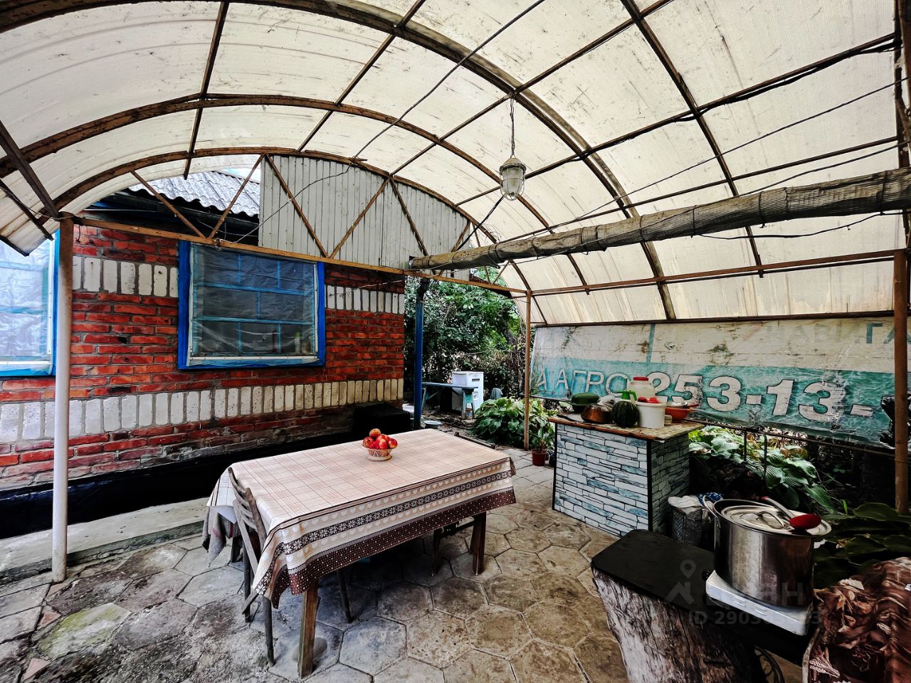 Земельный участок с рядом плодовых деревьев: груша, яблони, инжир, сливы, абрикос, персик, вишня, черешня, виноград, а также есть теплица.