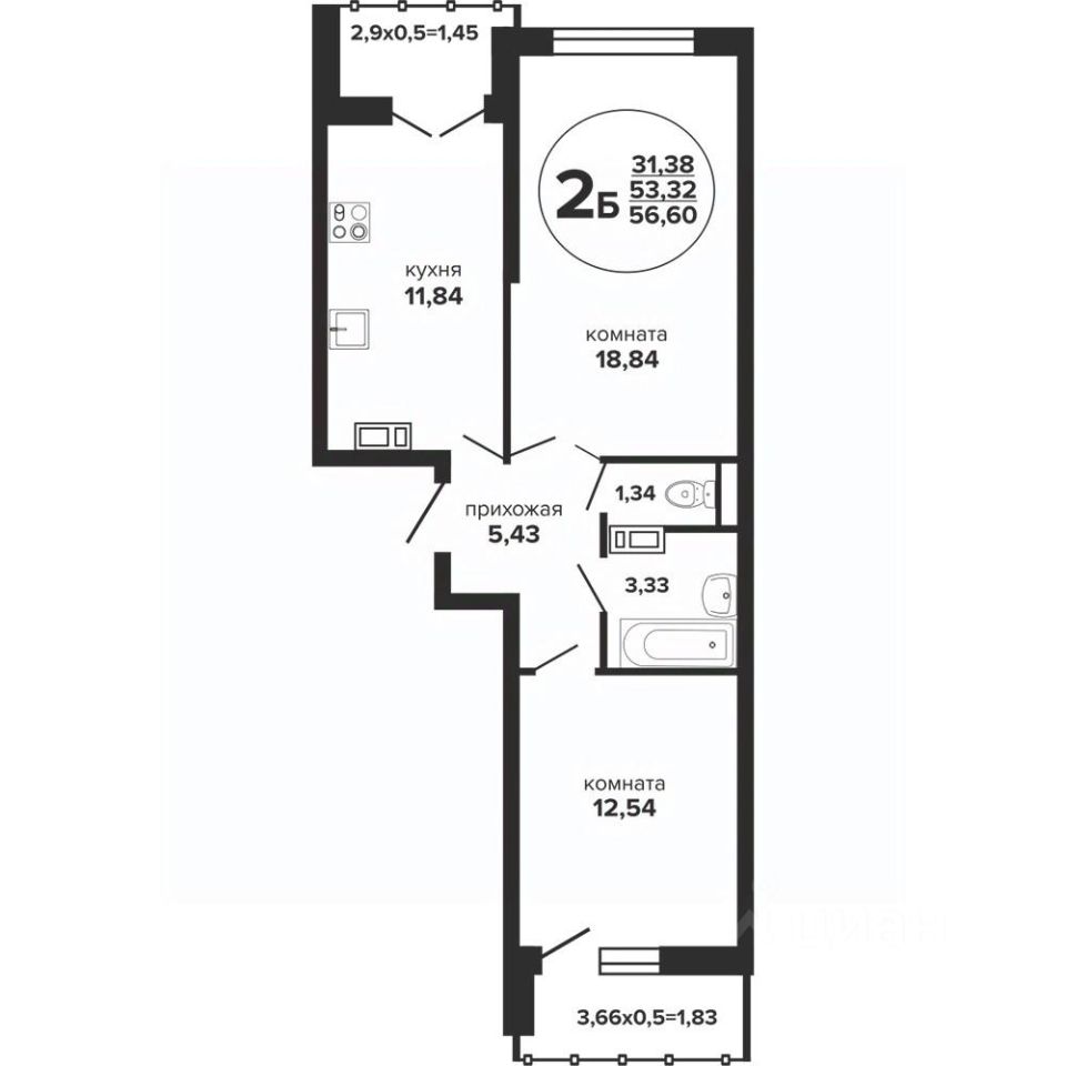 продам 2-к, Российская, 257/78 655 000 ₽