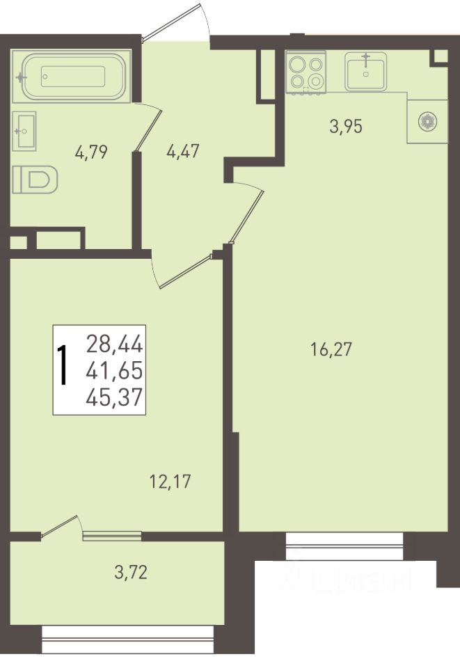 Общая площадь45,37 м2