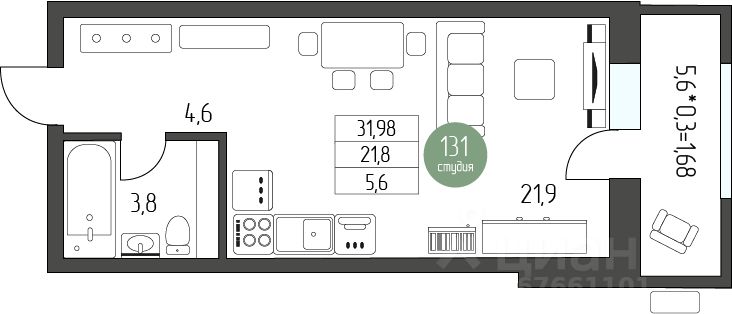 продам 1-к, Карла Маркса, 262а5 756 400 ₽