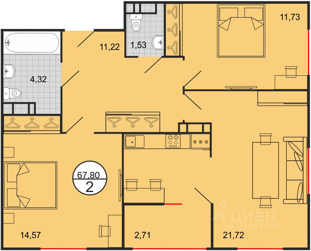 Общая площадь67,8 м2