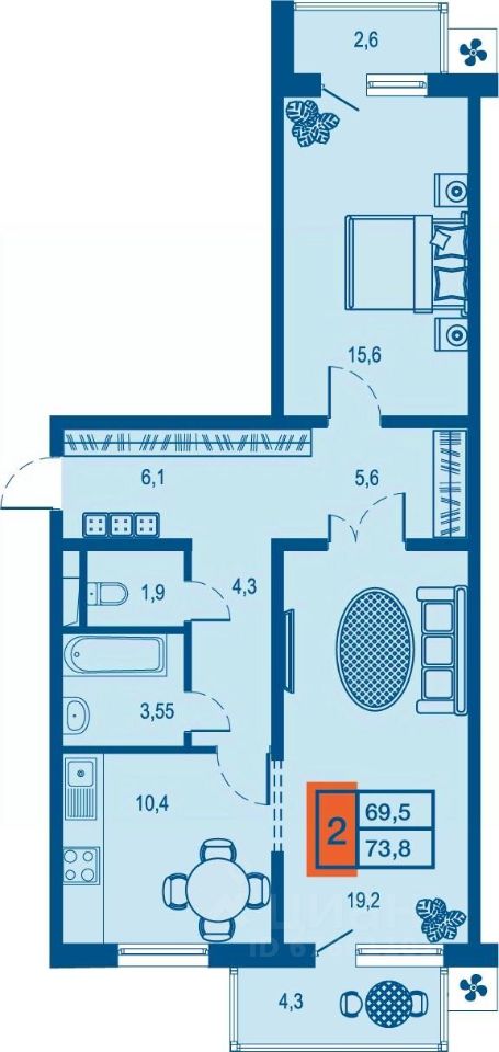 продам 2-к, им Селезнева, 104/110 005 415 ₽