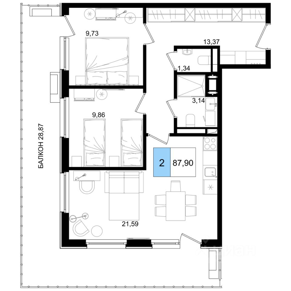 Общая площадь87,9 м2
