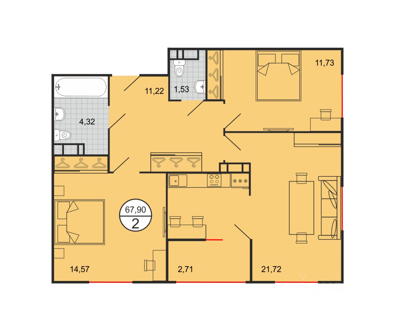 Общая площадь67,8 м2