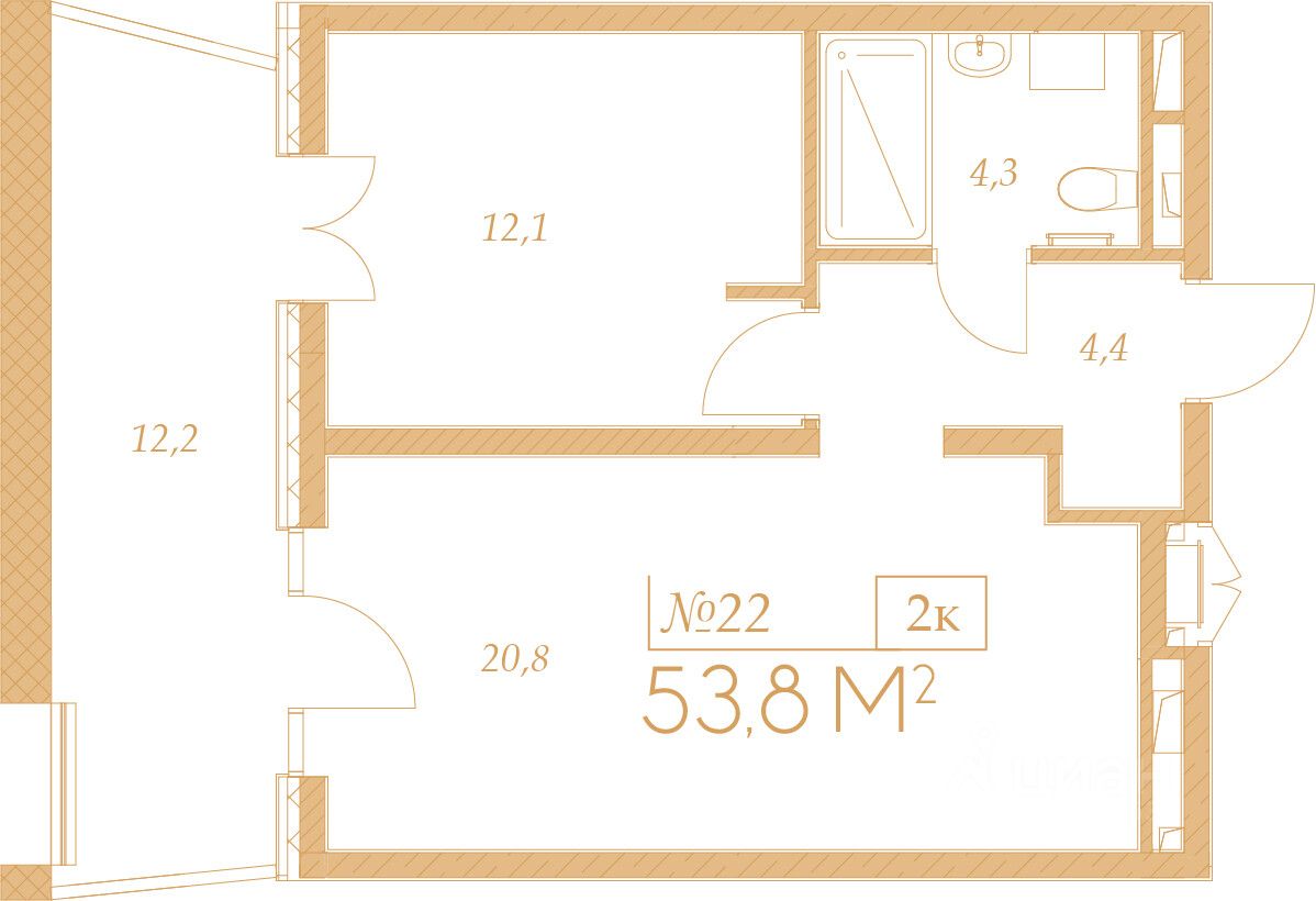 Общая площадь53,8 м2