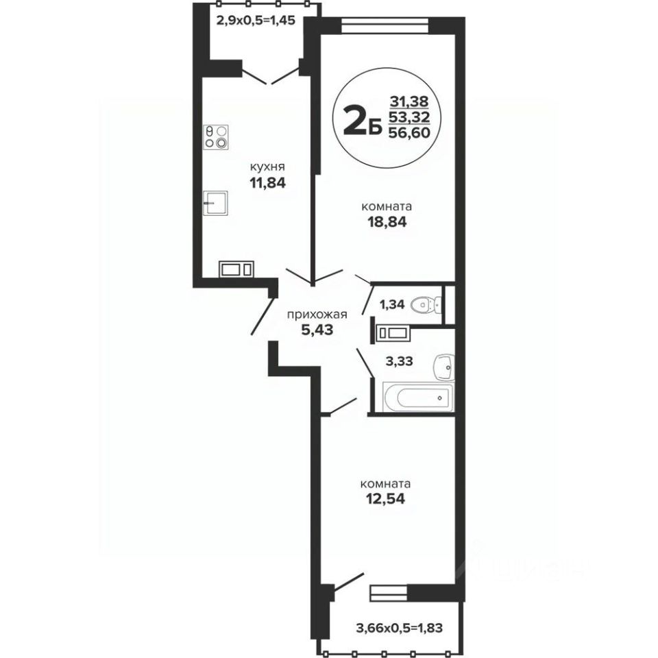 продам 2-к, Российская, 257/78 692 500 ₽