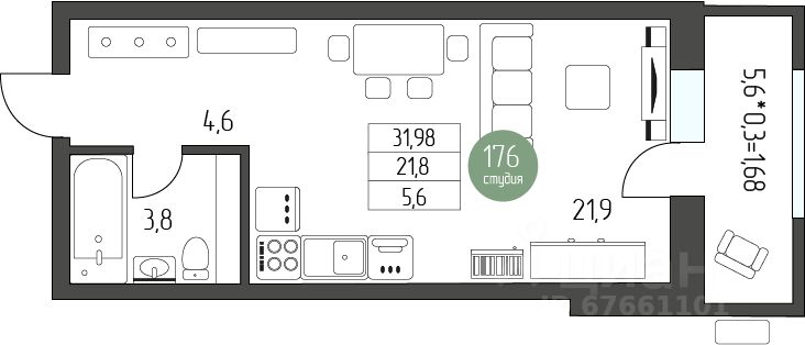 продам 1-к, Карла Маркса, 262а5 684 400 ₽