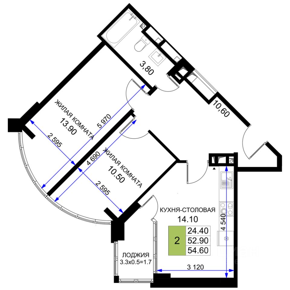 Продаётся 2-комнатная квартира в строящемся доме (Литер 6), срок сдачи: IV-кв. 2025, общей площадью 54.6 кв.м., на 4 этаже. Новый жилой комплекс от застройщика ''Межсанаторный'' расположен по адресу город Анапа, Межсанаторный проезд.