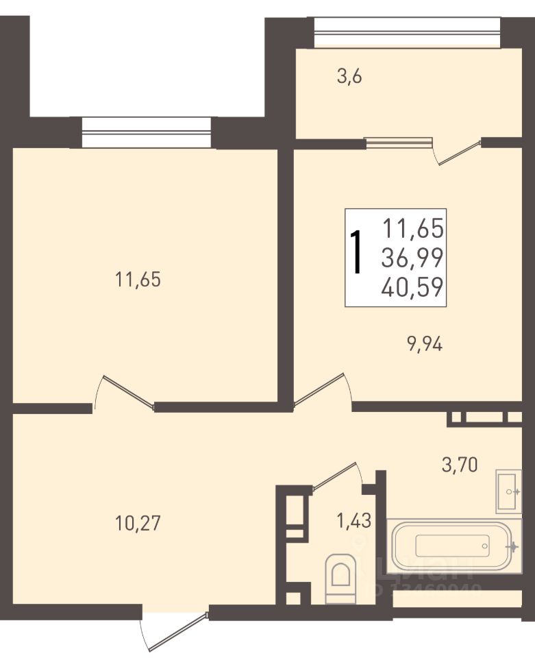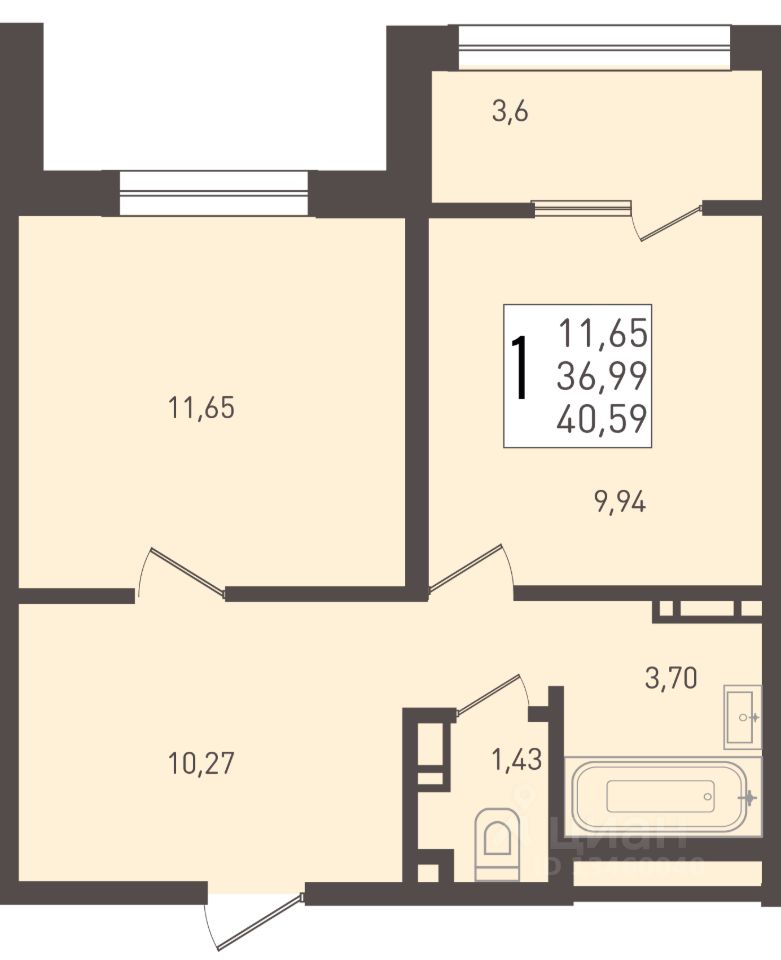 Общая площадь40,59 м2
