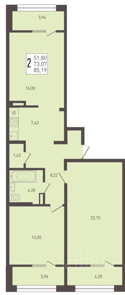 Общая площадь85,19 м2