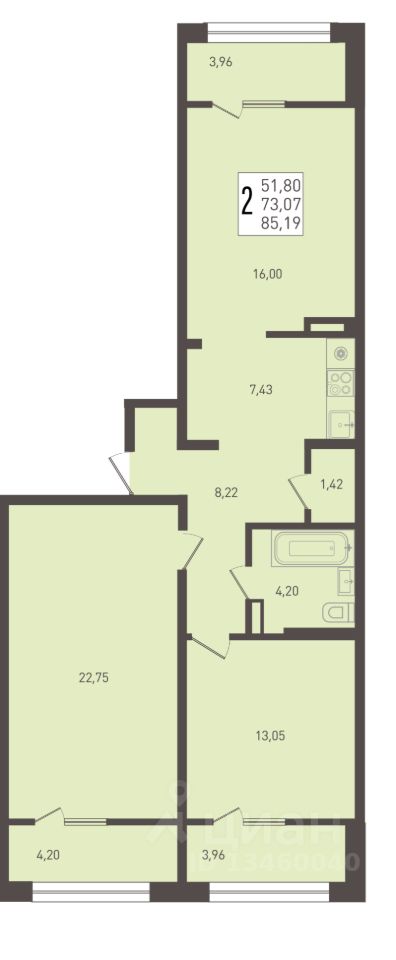 Общая площадь85,19 м2
