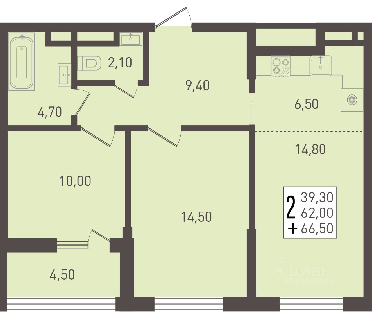 Общая площадь66,5 м2
