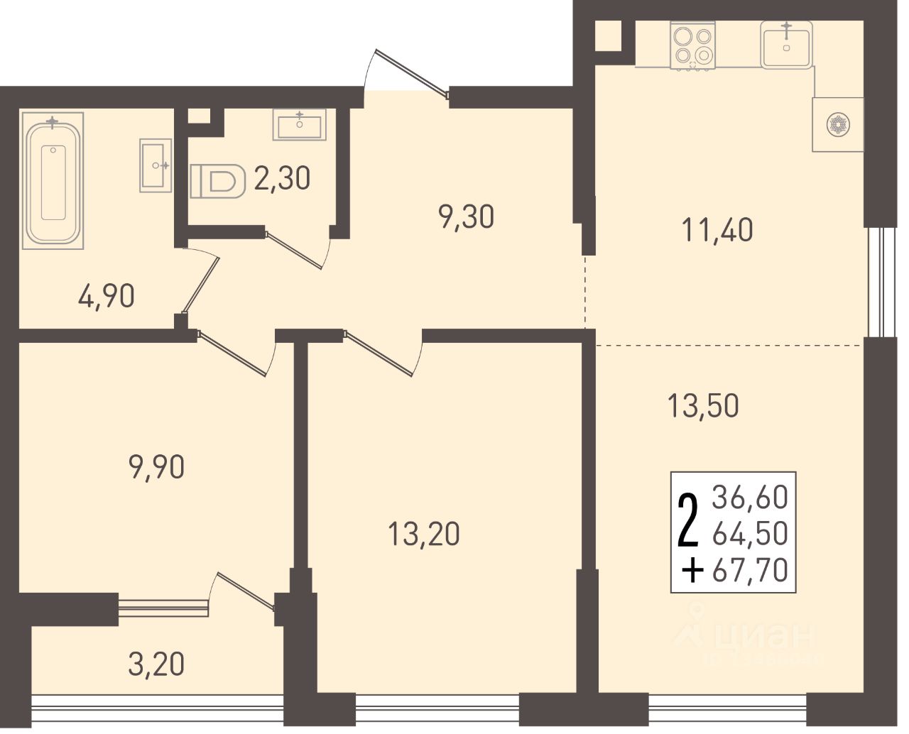 Общая площадь67,7 м2