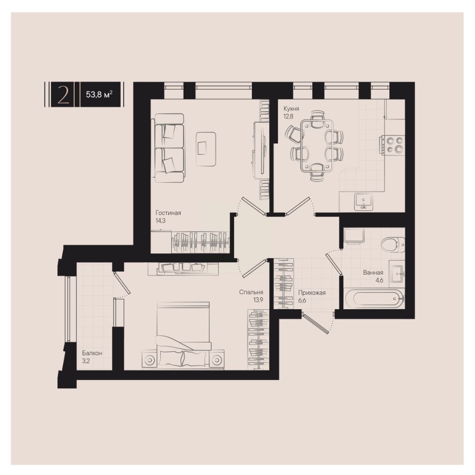 Общая площадь53,8 м2
