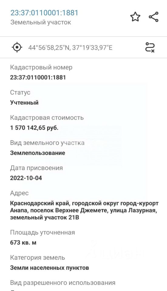 кадастровый номер 23:37:0110001:1881