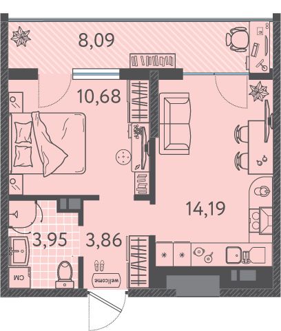 Развитая инфраструктура: 2 школы и 4 детских сада, Гипермакеты Лента, Магнит и Леруа Мерлен, Продуктовые супермаркеты Пятерочка, Магнит, Перекресток, Торгово - развлекательный центр в 15 минут от дома.