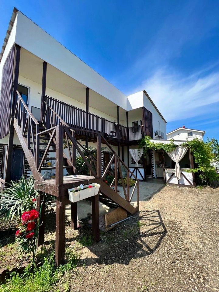 Продаётся уютная гостиница в посёлке Кучугуры на берегу Азовского моря. Общая площадь дома — 150 квадратных метров, участок — пять соток. Земля находится в собственности, вид разрешённого использования — для объектов жилой застройки. Межевание проведено. Дом стоит на кадастровом учёте, в нём можно прописаться.