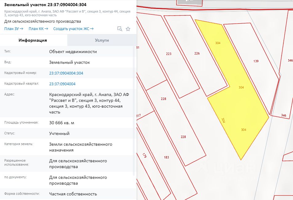 Продаю участок 3, 06 Га в ЗАО АФ ''Рассвет и В'' Краснодарский край, г. Анапа. Участок сельскохозяйственного назначения для сельскохозяйственного производства 23:37:0904004:304