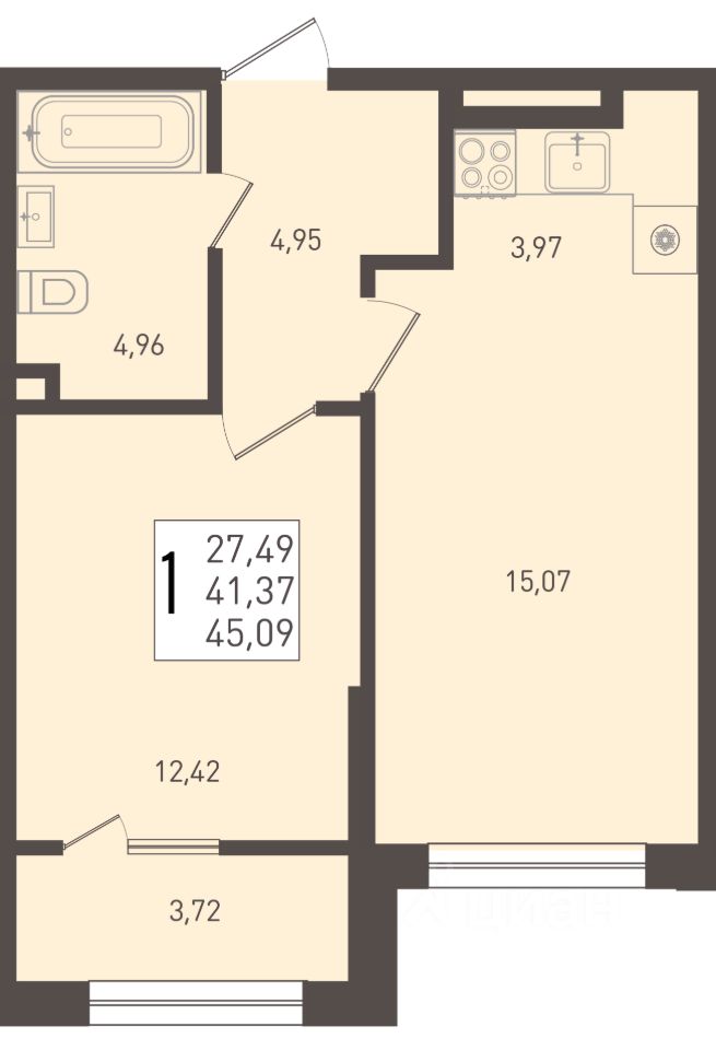 Общая площадь45,09 м2