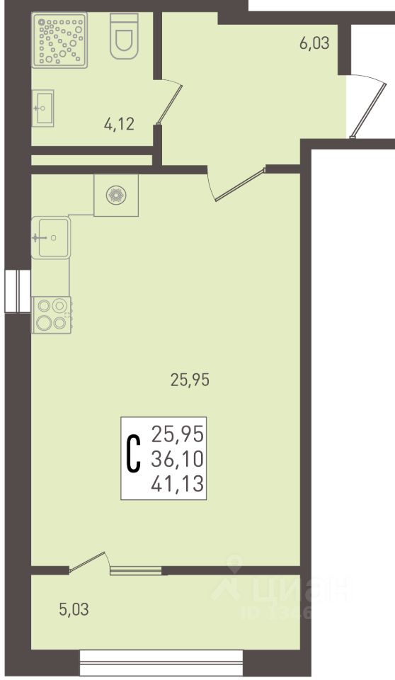 Общая площадь41,13 м2