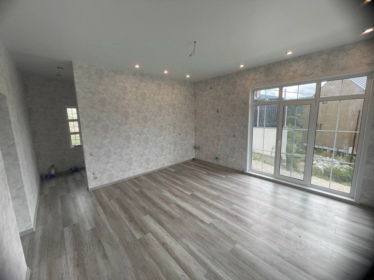 Планировка: просторная кухня - гостиная с выходом на террасу откуда открывается вид на горы и лес, 2 спальни и с/у. Во всех помещениях теплые полы. Коммуникации все подключены и функционируют.