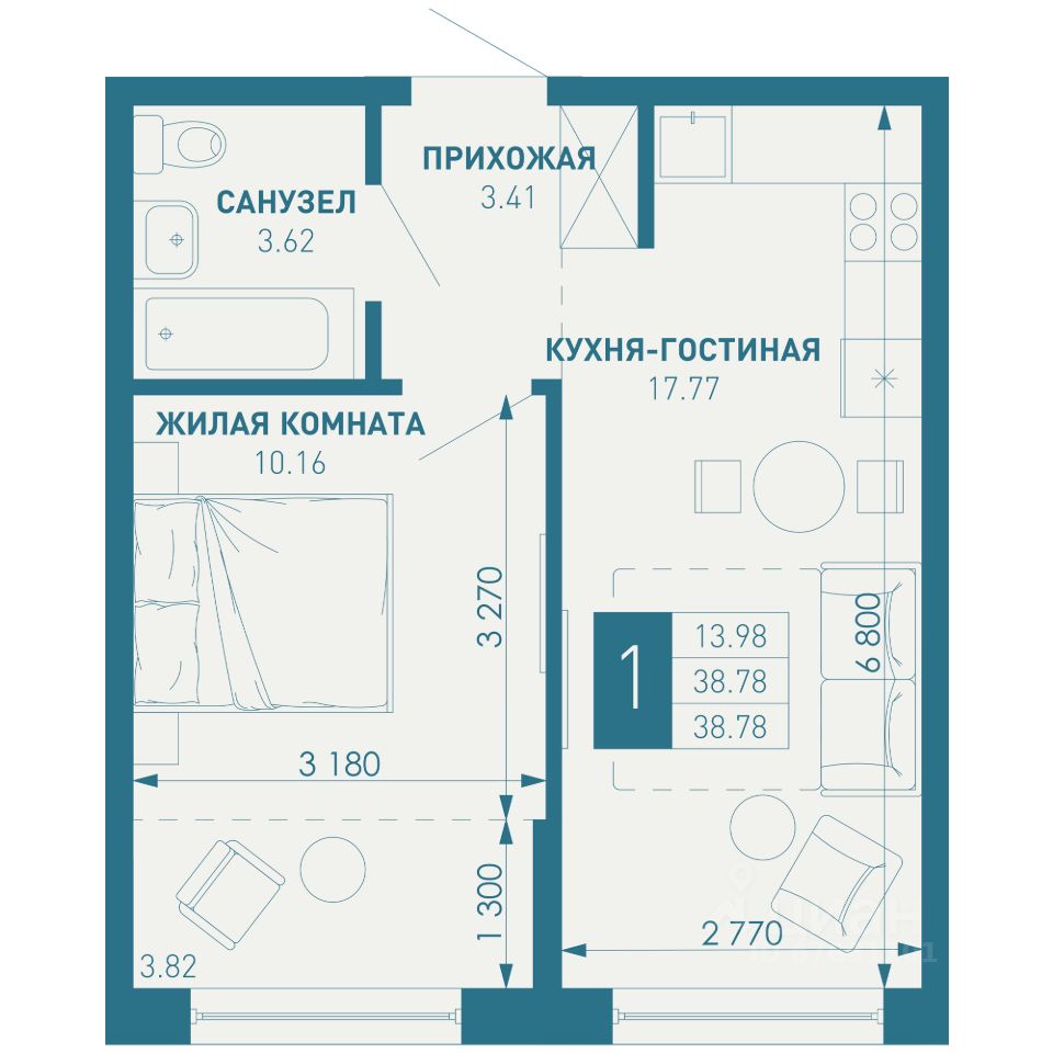 Общая площадь38,78 м2