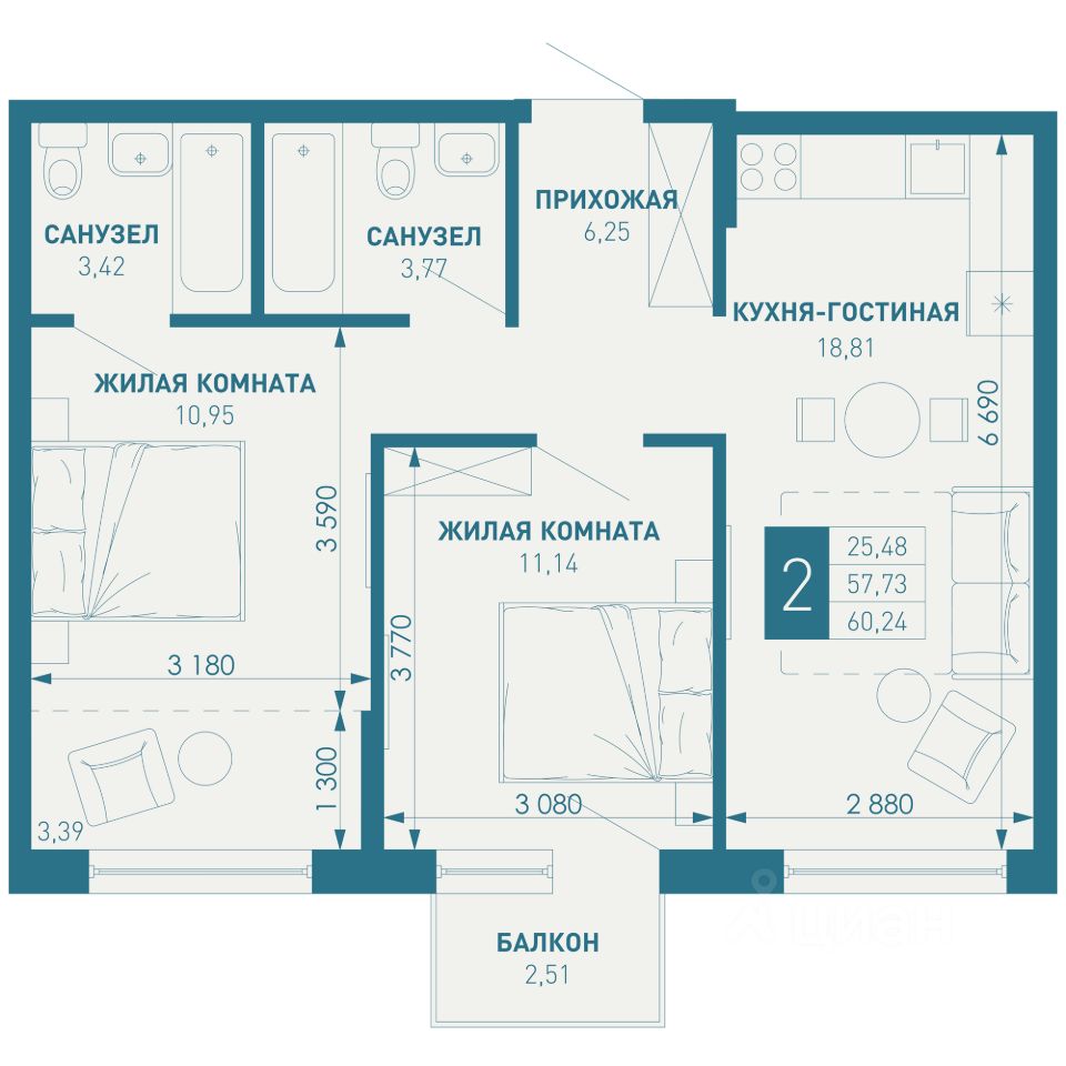 Общая площадь60,24 м2