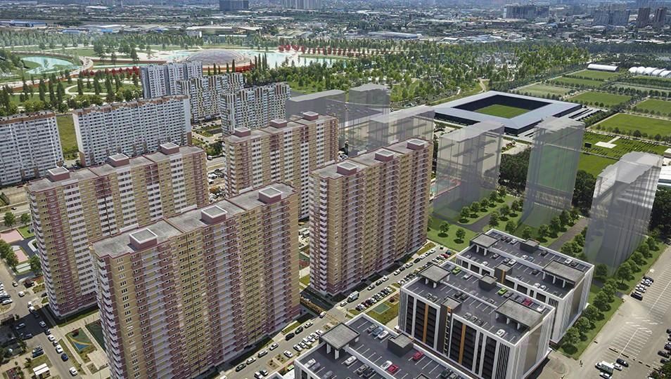 Уже готовые и дома на этапе возведения располагаются в самом, пожалуй, известном месте города районе стадиона ФК ''Краснодар'' и красивейшего футуристического одноименного парка.