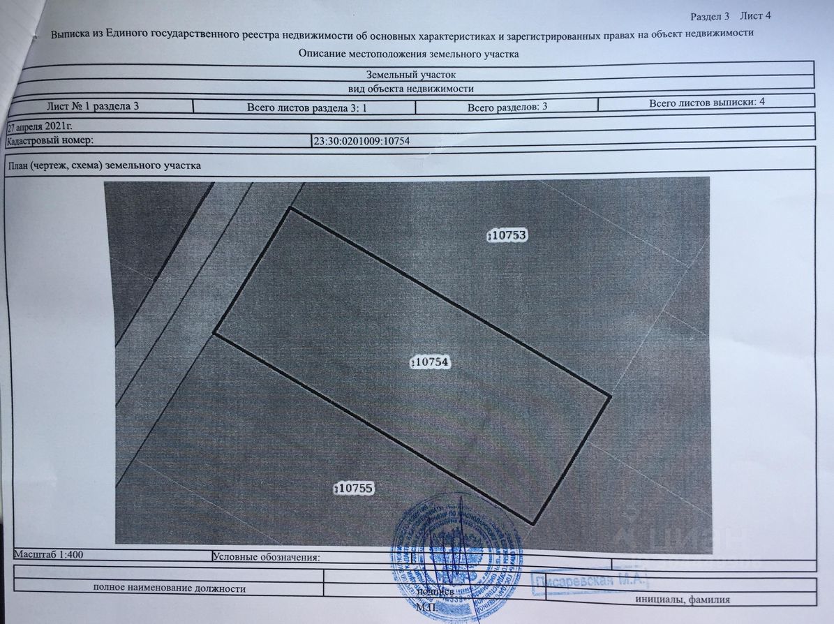 Кадастровый номер участка 23:30:0201009:10754.