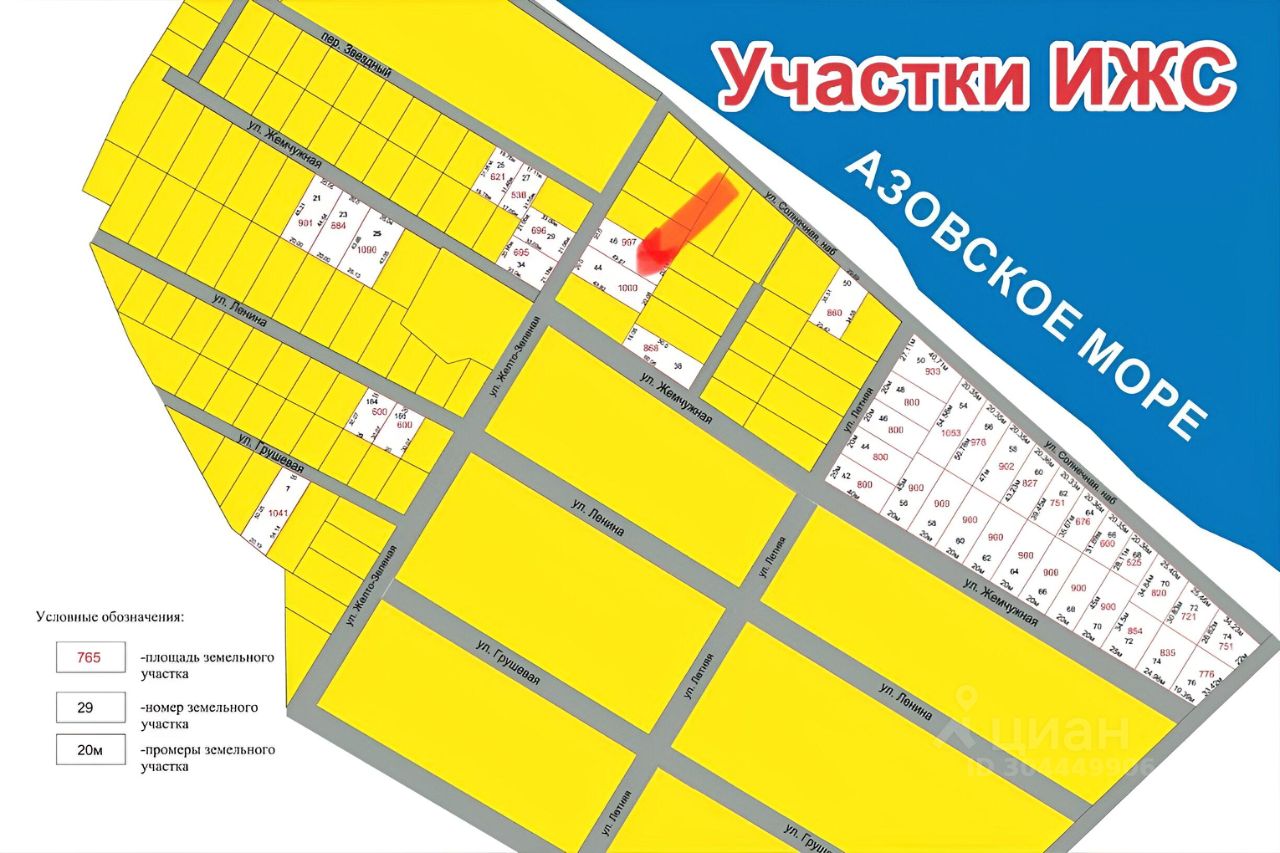 Продается участок ИЖС на берегу Азовского моря в курортном поселке КУЧУГУРЫ по ул.Желто-Зеленой, 46 ( 9, 97 сот) .