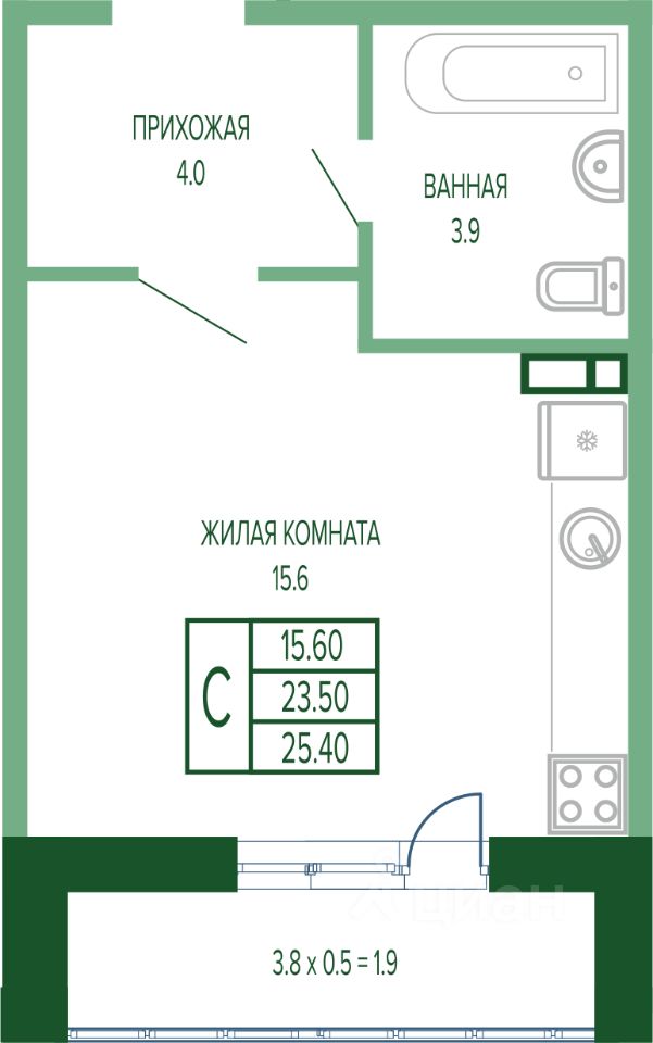 Общая площадь26,3 м2