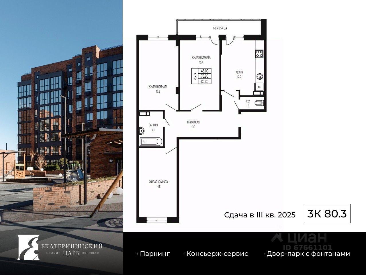 Премиум-подход в каждой детали: Консьерж-сервис Охрана 24/7 Дизайнерские лобби Система ''Умный дом'' Потолки 3,1м Резиденции на выбор: от уютных видовых квартир до масштабных резиденций до 500 м²